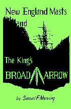 Admiralty Officers in Old England and their contracted Mast Agents in New England had authority over the King’s Pines in New England’s forests. Whoever might own a specific piece of land, the tallest-straightest-broadest pine-trees thereon were Reserved for the Crown and marked accordingly (after c.1690) with the Kings Broad-Arrow (the symbol of British government property) axed onto them by three neat strokes [See Illustration]. In theory that meant Do Not Disturb, but in practice many colonial homes in northern New England had some very broad boards built into their upper stories where they were less visible to inspectors.