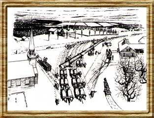 This incident must have occurred between 1786 (when Lewis Gay supposedly came to the Casco area) and 1823 (when he is reported to have died at age 73). Knight’s account (from Ch VII p 40) follows. Lewis Gay lived on Quaker Ridge Road in today’s Casco (then part of Raymondtown), and, like some of his neighbors, engaged in part-time supplying of masts “as season and farming needs permitted’, especially when it was “practical in winter with frozen ground and snow for sleds”.