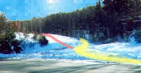 Across Route 302 from Faith Lutheran Church (red oval on left) is Kay’s Decorating Center (paint & wallpaper store) (red oval on right). The Kay’s building apparently is a very old structure which, according to local legend, formerly housed entertainment for the mast-teamsters who had to wind their loads very slowly through the challenge of Gay’s Pinch nearby (yellow trails in both images). The kinds of entertainment that were available there well may have become exaggerated over the years, as legend turned into jokelore or even fakelore. However, the active Freudian symbolism of lodged-logs easily can eclipse the passive alternative symbolism of castrated-cattle, if one thinks beyond the possibility of teamsters just stopping for water-with-a-smile. So, paint your own picture of the paint-store’s past!